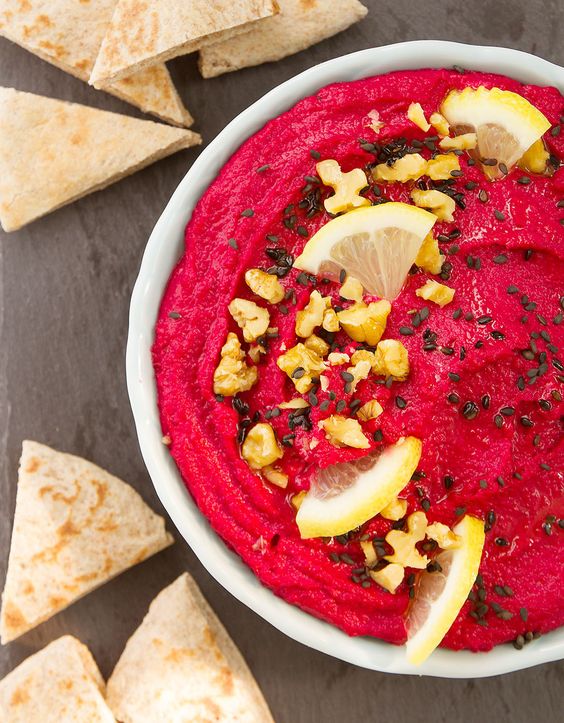 I am not a fan of beets, but this Beetroot Hummus recipe recipe is AMAZING. Nutrient dense beets provide your family with a healthy dose of magnesium, iron, folate and fiber while the chickpeas are loaded with vitamin A, C, and E. Stay healthy through the holidays? Check!