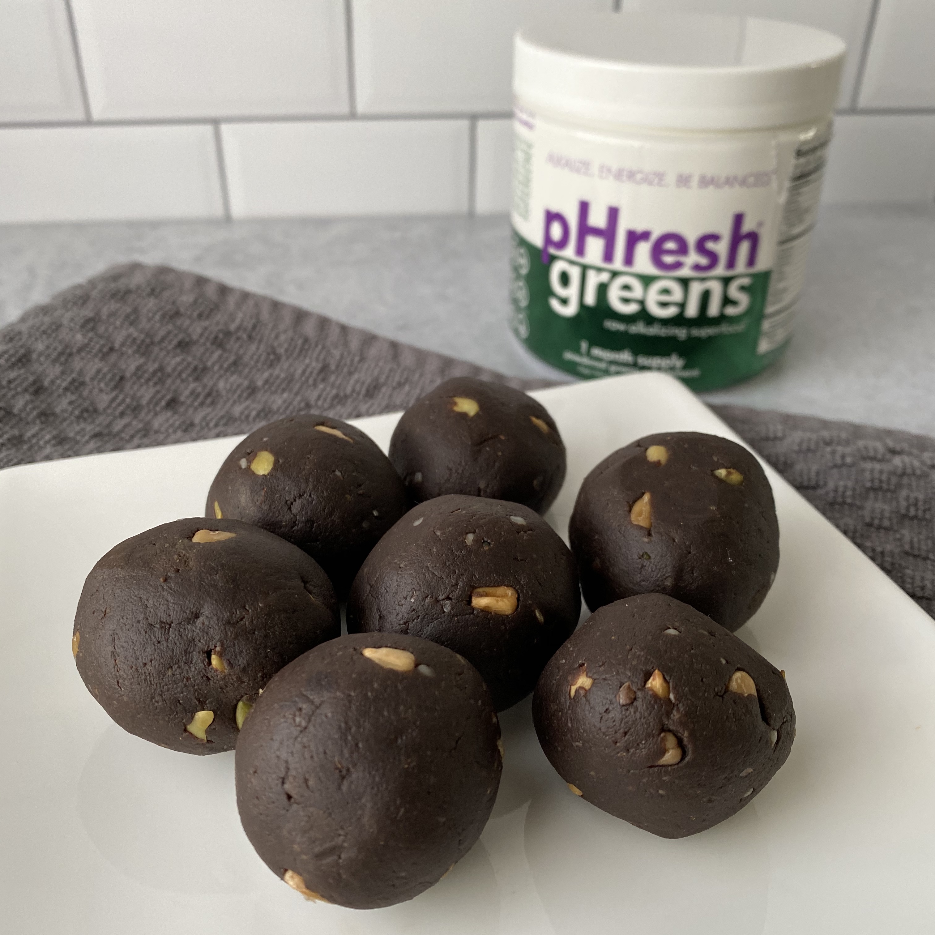 Sometimes you just don’t want to snack on veggie sticks, but you still want the benefits they provide. Turns out you can have your cake and eat it too. The “surprise” part of these energy bites are the pHresh greens. I buy mine through vitacost, and they are well worth the investment.