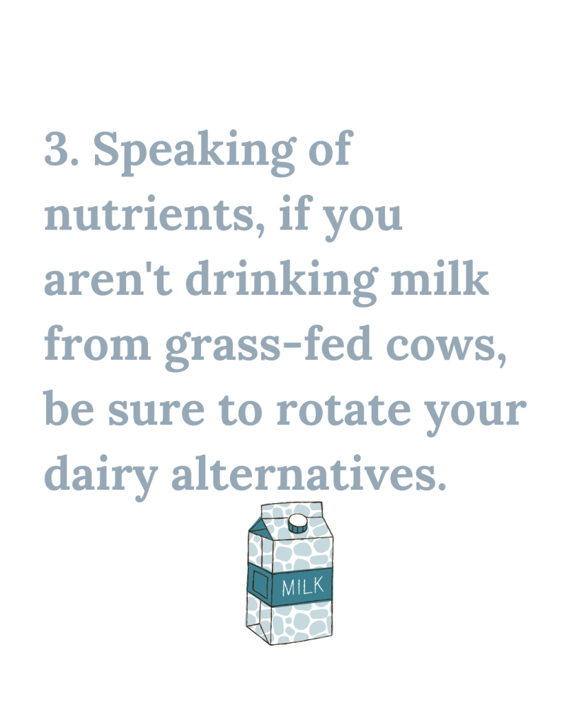 3. Rotating your non-dairy milk helps to ensure you’re ingesting a range of vitamins and minerals.